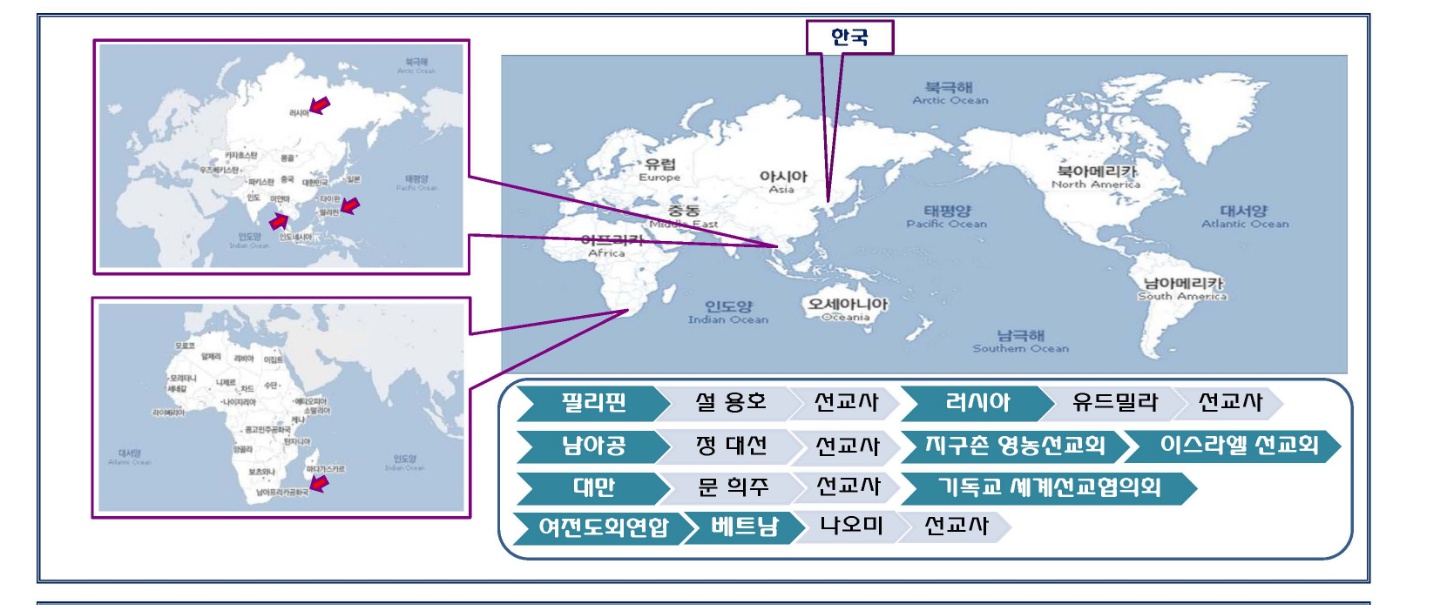 해외선교사로, 기독교세계선교협의회 지구촌영농선교회 이스라엘선교회 를 후원하고 있습니다.