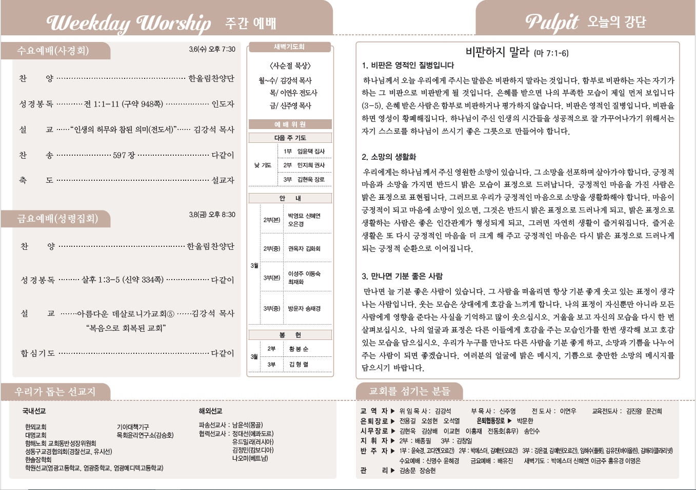 교역자 및 직원