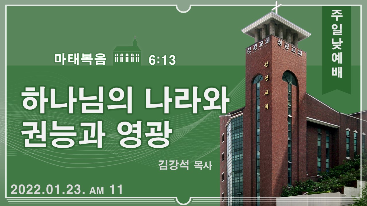 "하나님의 나라와 권능과 영광"(마 6:13) 2022. 1. 23. 주일예배 김강석 위임목사