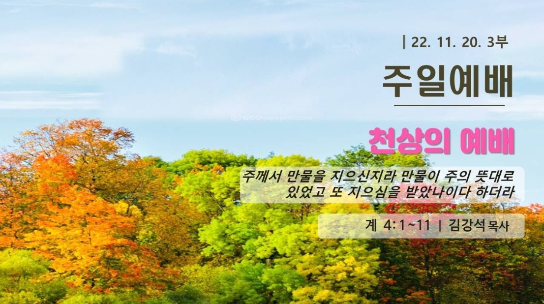 | 천상의 예배(요한계시록 4:1-11) | 김강석 목사 | 2022-11-20 | |||