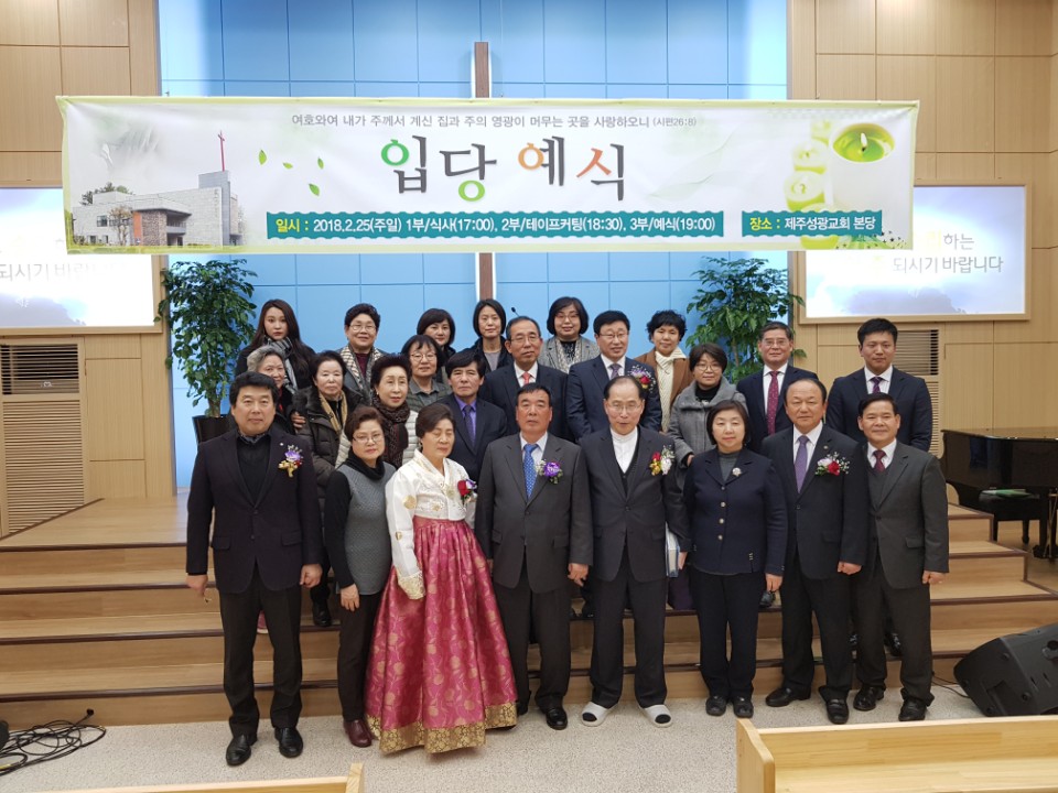 2018. 2. 25(주일) 오후 7시 입당예배※ 성광교회 창립 50주년 기념으로 2016년 7월 18일 제주 성산포 지역에 제주성광교회를 개척설립하였습니다