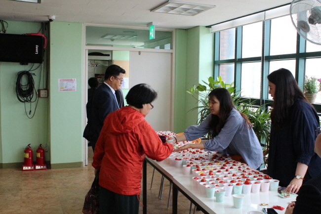3부 예배후 점심시간청소년부 교사들이 5월중 이뤄지는 다과 대접을 하고 있습니다.