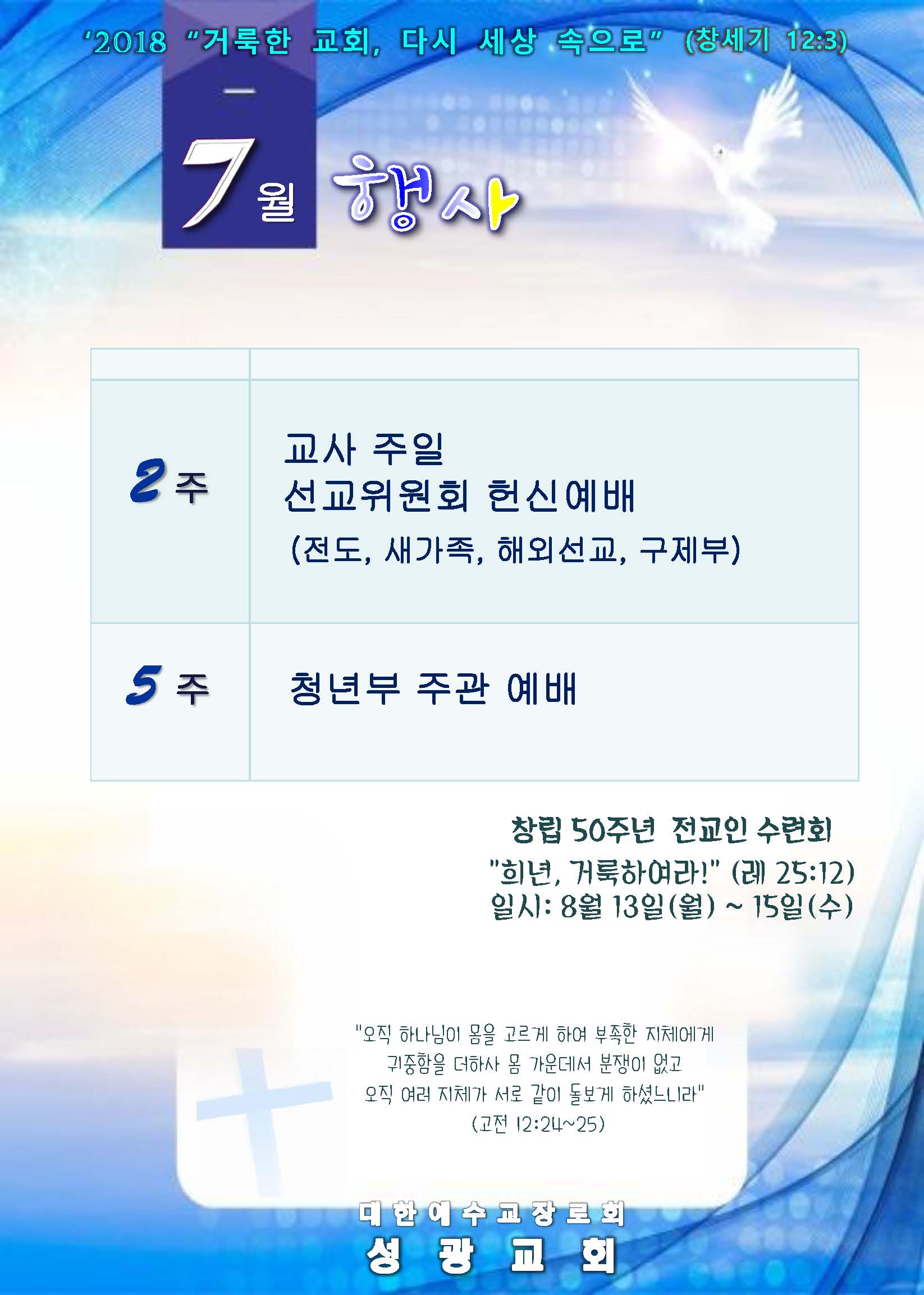 [ 7월 교회 행사 안내입니다 ]