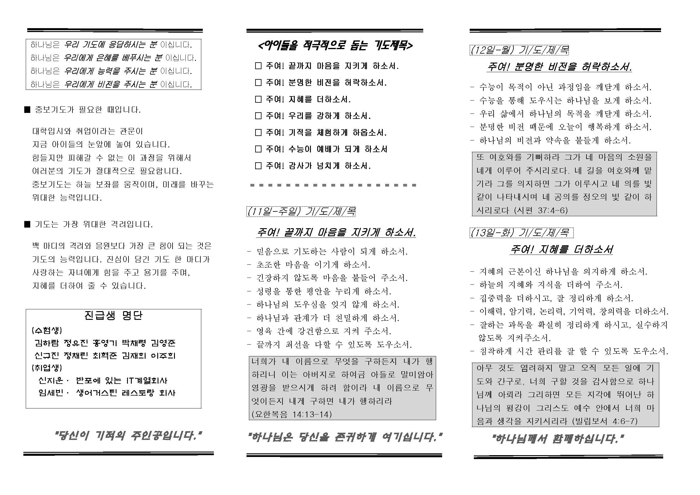 ▣ "수험생을 위한 수능일 기도회"일시: 11월 15일(목) 오전 8:40 장소: 제 1교육관 (2층)