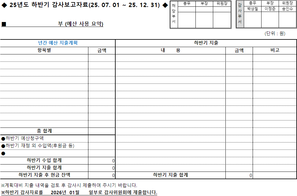 감사위원회 제출용 결산자료 서식(2025-01 개정)